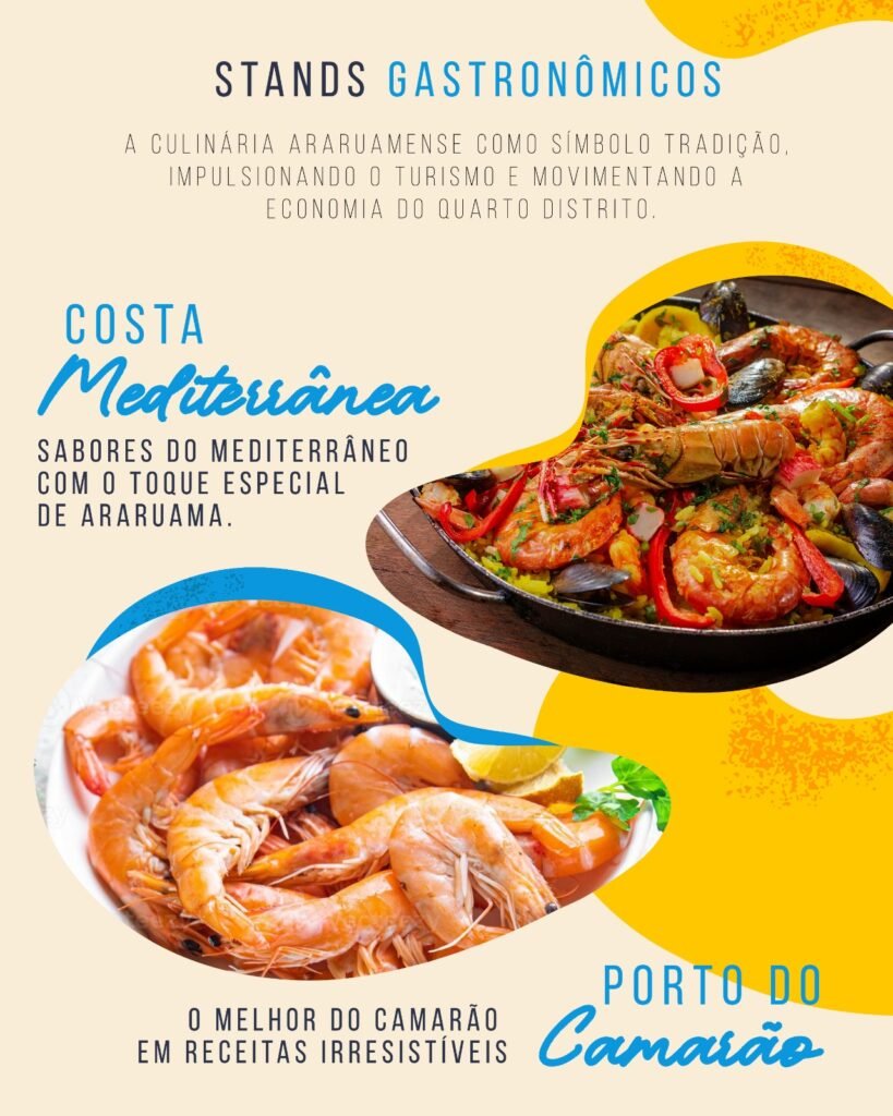 Com pratos inspirados em cinco temáticas — Costa Mediterrânea, Porto do Camarão, Sabor das Profundezas, Maré Nordestina e Canoa do Pescador —, o festival reunirá diversos restaurantes da região, que irão explorar ingredientes frescos e sabores autênticos, celebrando a riqueza do mar e a criatividade da gastronomia araruamense.