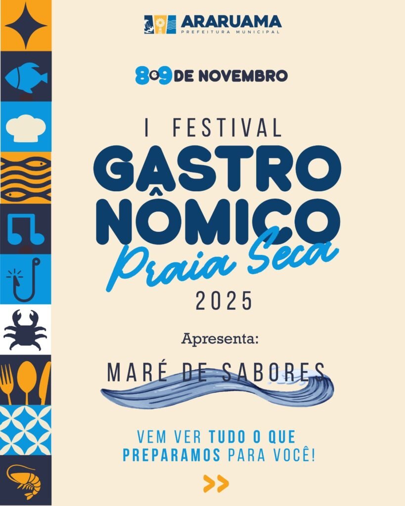 O distrito de Praia Seca vai se transformar nesse fim de semana em um point da boa gastronomia, da música e da cultura. A Prefeitura de Araruama promove, nos dias 8 e 9 de novembro, o I Festival Gastronômico “Maré de Sabores”, um evento que promete encantar moradores e turistas com o melhor da culinária local e regional. A programação começa a partir das 11h, no Calçadão de Praia Seca, com entrada gratuita.
